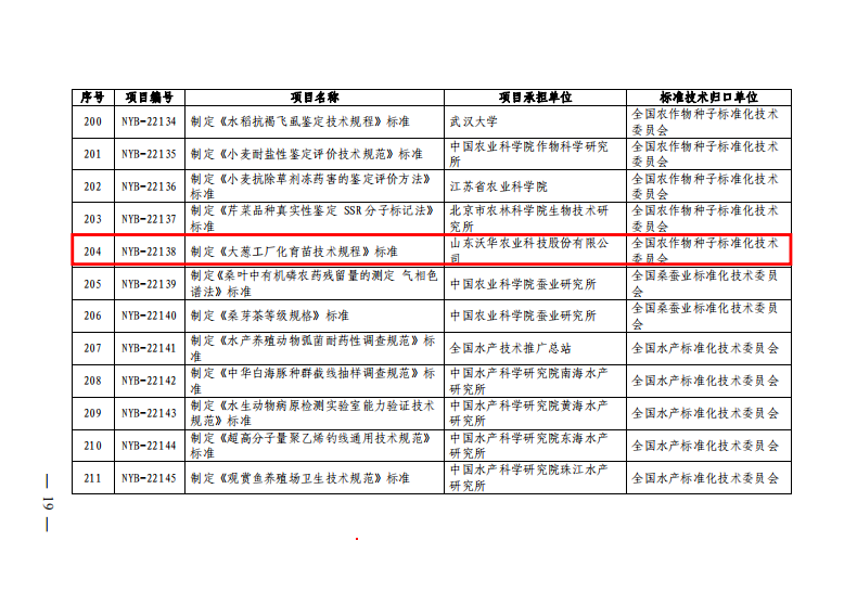 近日,由山東沃華農(nóng)業(yè)科技股份有限公司承擔的行業(yè)標準《大蔥工廠化育苗技術(shù)規(guī)程》,已成功獲農(nóng)業(yè)農(nóng)村部批準立項,這次立項在安丘農(nóng)業(yè)尚屬首例。未來此項技術(shù)規(guī)程如順利實施推廣,將填補國內(nèi)大蔥工廠化育苗的行業(yè)標準空白,為大蔥集約化、標準化育苗提供強有力的技術(shù)支撐,為全國大蔥產(chǎn)業(yè)進一步發(fā)展提供行業(yè)參考。